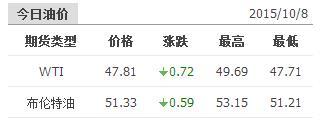 2015年10月8日國際原油價格表