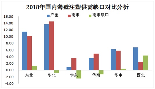 由薄壁注塑供需缺口數(shù)據(jù)對(duì)比分析發(fā)現(xiàn),需求缺口集中在華北、華東及華南地區(qū),而供需失衡地區(qū)多集中在西北及東北地區(qū),兩地多以貨源調(diào)撥至各大區(qū)域以緩解當(dāng)?shù)毓┬枋Ш饩謩?shì)。華東地區(qū)供需缺口較為明顯,但因華東地區(qū)受環(huán)保政策影響,在2018年4月27日當(dāng)?shù)卣雠_(tái)餐盒使用標(biāo)準(zhǔn),該標(biāo)準(zhǔn)推行后,外賣行業(yè)將采用生產(chǎn)技術(shù)較為成熟得淋膜紙碗替代塑料送餐盒,約可減少75%以上得塑料垃圾。由于該政策提出,華東地區(qū)整體薄壁供應(yīng)量明顯下降。