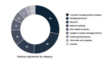 自“新塑料經(jīng)濟(jì)全球承諾書”發(fā)起四個(gè)月以來(lái),簽署承諾書的企業(yè)數(shù)量由100多個(gè)增加到150多個(gè)。參與企業(yè)的數(shù)量占據(jù)了超過(guò)全球20%的塑料包裝企業(yè)。